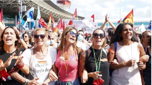 Questa restaurazione borghese profonda e sfacciata gode della complicità del mondo dell’informazione e soprattutto della subalternità e del sostegno di tutto il sistema politico. Per questo Draghi viene osannato come nuovo uomo della provvidenza. Ma a livello sociale non va così liscia. Attorno alla lotta della GKN contro i licenziamenti sta crescendo un movimento di solidarietà quale da tempo non si vedeva nel paese. Così è anche per la protesta dei lavoratori dell’Alitalia e per tante altre vertenze. Ovunque crescono mobilitazioni che hanno in comune il rifiuto della politica economica e sociale del Governo Draghi e che oggettivamente mettono in discussione il disegno comune liberista del potere imprenditoriale italiano e di quello che guida la UE.