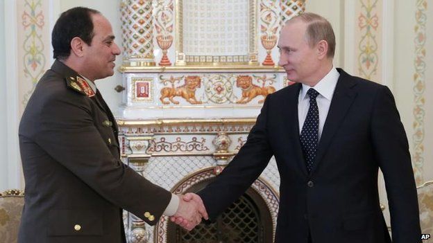 Il presidente russo Vladimir Putin si è detto "consapevole" dell'intenzione del Feldmaresciallo Abdul Fattah al-Sisi di correre per la presidenza durante una visita di Sisi a Mosca per negoziare un accordo per la vendita di armi di 2 miliardi dollari affare delle armi segnalato. Sisi non ha ancora formalizzato la sua candidatura.