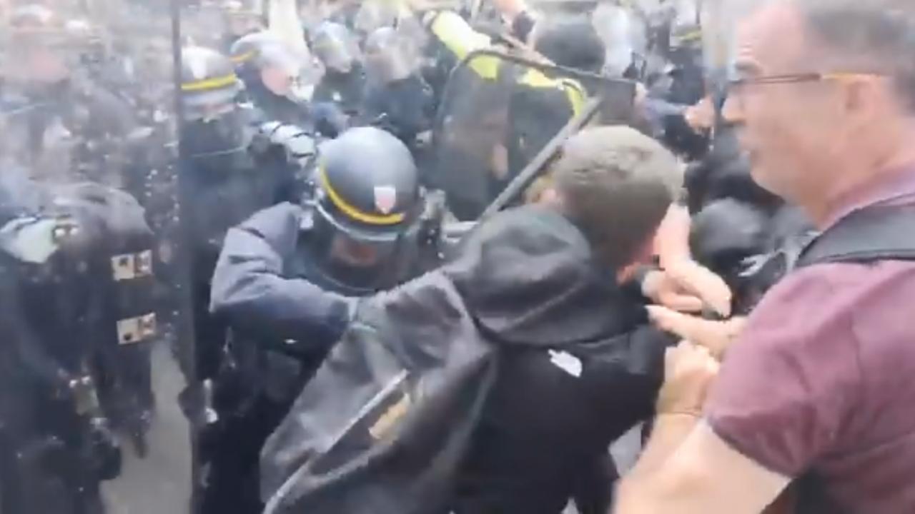 Premiers affrontements avec les CRS à la manifestation contre le #PassSanitaire à Paris pic.twitter.com/3t2jx81Rdb