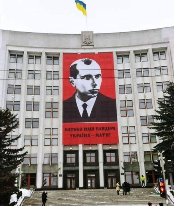Nelle città ucraine si erigono da anni monumenti in onore di criminali di guerra e collaborazionisti del terzo Reich. Come Roman Shukhevych, ufficiale del battaglione Nachtigall, la polizia ausiliaria nazista in Ucraina. O Stepan Bandera, vassallo di Hitler e leader dell’UPA, l’organizzazione paramilitare colpevole di aver contribuito all’Olocausto ed eseguito massacri e pulizia etnica nei confronti di decine di migliaia di ebrei, soprattutto polacchi. Come a Volyn dove ne furono sterminati circa 100.000, la maggior parte donne e bambini. Da giorni la gigantografia di Bandera svetta sul palazzo del Consiglio regionale di Stato di Ternopil. A lui sono dedicate piazze e statue e addirittura una marca di caffè. Nelle scuole ucraine vengono distribuiti ai bambini libri a fumetti sull’UPA.