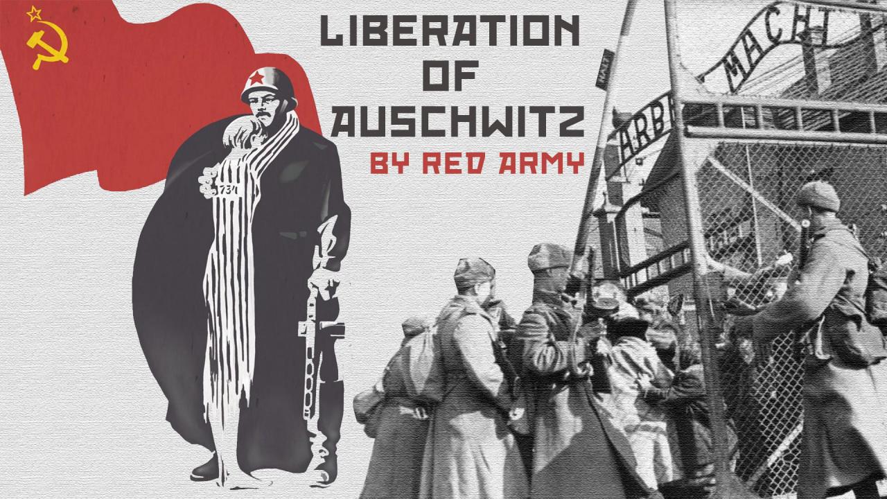 27 Gennaio 1945. I carri armati sovietici dell'Armata Rossa abbattono i cancelli del campo di concentramento di...