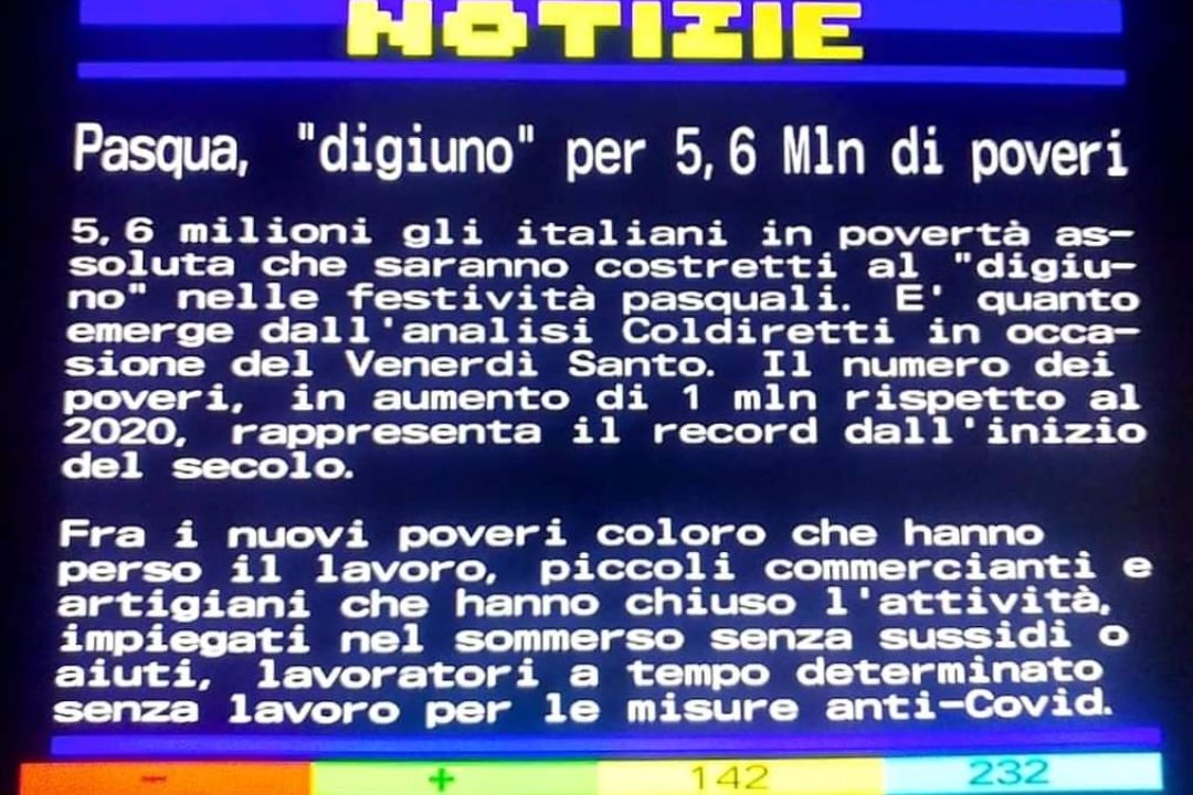 "5,6 milioni di italiani a digiuno". Il Televideo Rai sintetizza la Pasqua 2021