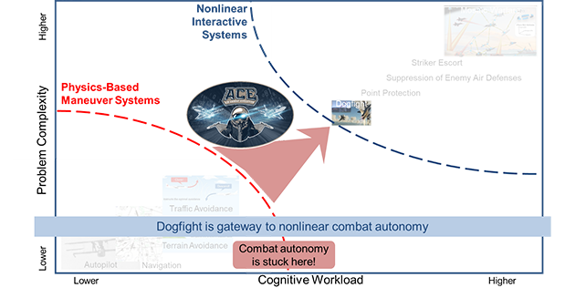 Il progetto è gestito da un contractor ed è seguito a terra da tecnici che registrano le performance. L’obiettivo di ACE, si legge sul sito del DARPA, è implementare metodi per misurare, calibrare e aumentare le prestazioni di autonomia in combattimento. Il programma prevede l'applicazione tattica del combattimento aereo autonomo a scenari simulati a livelli operativi complessi, eterogenei, multiaerei, con acquisizione e gestione dati senza latenza, ponendo le basi per la futura sperimentazione del Mosaic Warfare dal vivo.