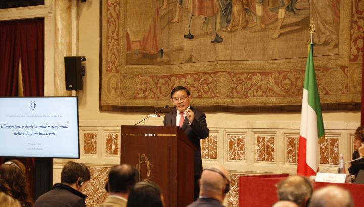 Buon pomeriggio! È un grande piacere per me partecipare all’evento organizzato dalla Camera dei Deputati in occasione del 55º anniversario delle relazioni diplomatiche tra la Cina e l’Italia.