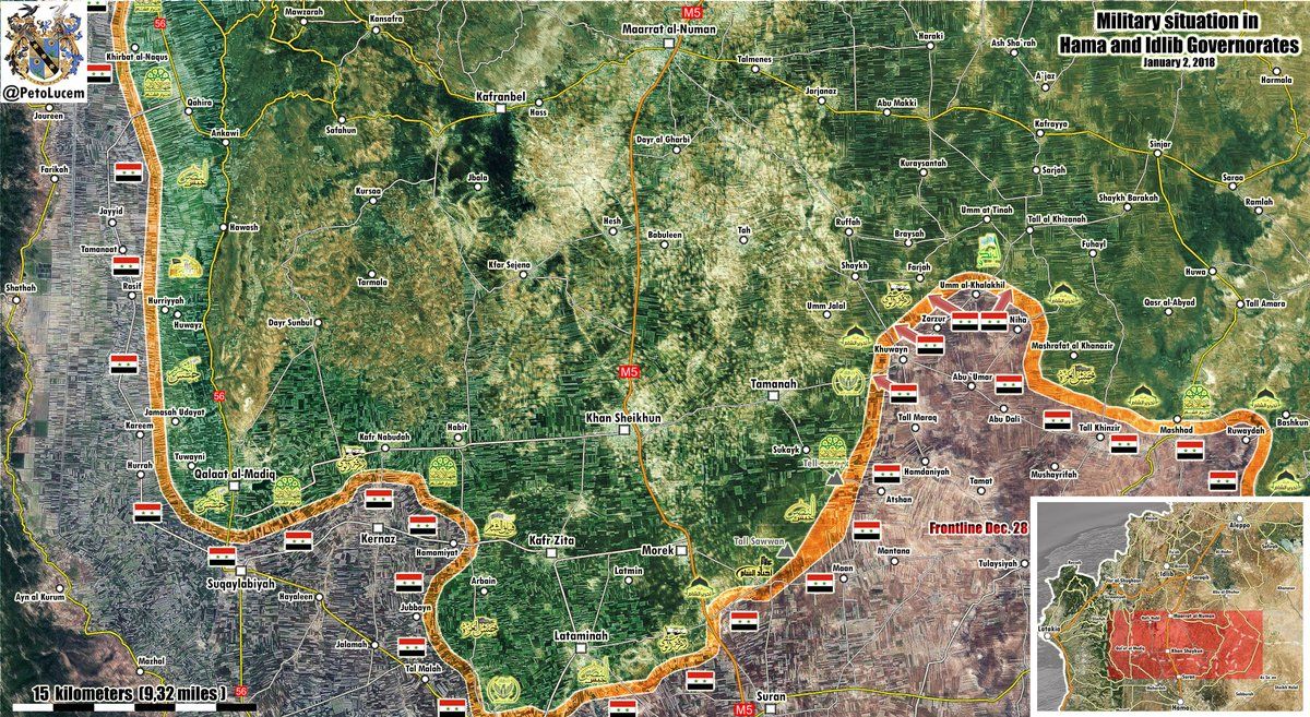 La maggior parte dei guadagni dell'esercito siriano potrebbe questo pomeriggio, in seguito al collasso della prima linea di difesa di Hay'at Tahrir Al-Sham, gruppo affiliato ad al Qaeda, intorno alla città di Al-Zarzur.