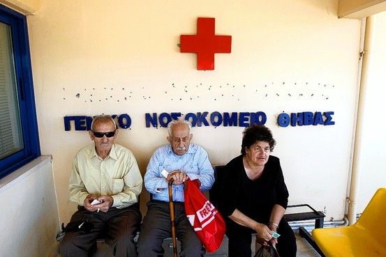 Nella Grecia commissariata dalla troika e costretta ad enormi tagli alla sanità, la disoccupazione di massa ha creato tre milioni di persone senza assicurazione, che possono accedere solo al pubblico per sperare in qualche cura. Si tratta, prosegue Ktg, della fine della sanità pubblica per assicurati e non assicurati: un paziente assicurato deve aspettare quattro mesi per sottostare a un'esame medico in un ospedale pubblico. L'esame ha un costo totale di 90 euro: 15 euro di contributi, e il sistema sanitario EOPPY che paga i restanti 75 euro. Se il paziente ha bisogno di cure immediate – nella maggior parte dei casi – l'ospedale gli consiglia di rivolgersi a specialisti privati nei servizi sempre interni all'ospedale pubblico ma nel pomeriggio e nonostante aver pagato già il ticket. Il paziente in questo caso deve pagare 70 euro per la visita specialista più i 15 euro di contributi o ticket.