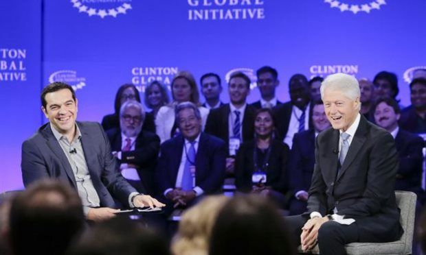 Il primo ministro greco Alexis Tsipras ha partecipato alla Clinton Global Initiative Annual Meeting del 2015, un forum sugli impatti della grande recessione dell'Unione europea, con un focus sui giovani europei.
