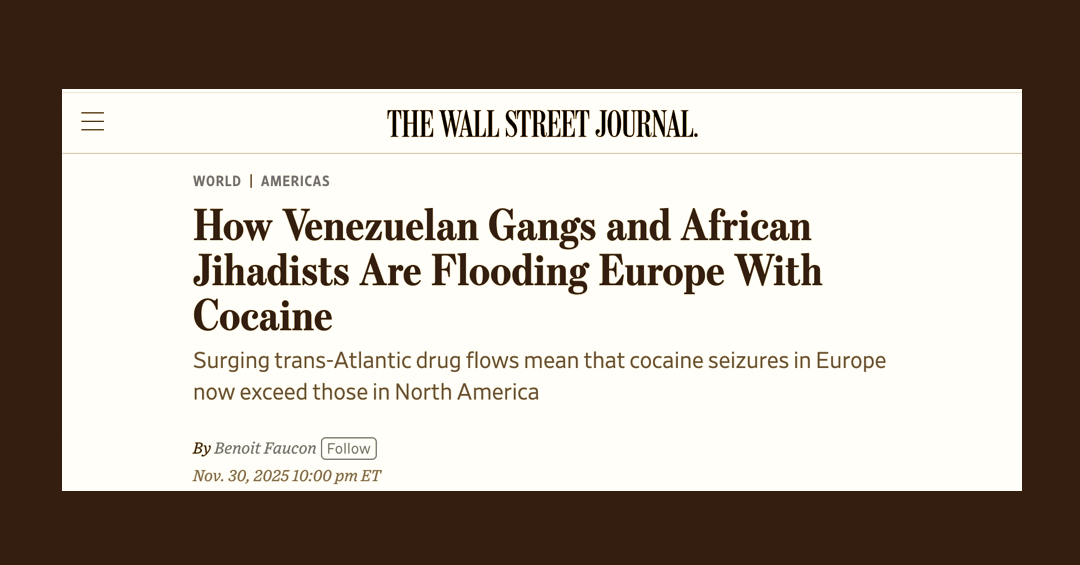 Proprio mentre si diffonde la notizia che Trump ha dato a Maduro un ultimatum per lasciare immediatamente il Venezuela se vuole salvarsi la vita, il Wall Street Journal, di proprietà di Murdoch, ha pubblicato un articolo di propaganda bellica incredibilmente sfacciato intitolato "Come le gang venezuelane e i jihadisti africani stanno inondando l'Europa di cocaina".