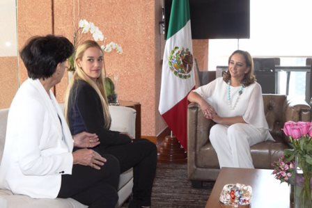 Il ministro degli Esteri del Messico, Claudia Ruiz, ha ricevuto lunedi Lilian Tintori, moglie di Leopoldo Lopez, membro dell'opposizione politico oggi in carcere in Venezuela per la diretta responsabilità nella morte di 43 persone e il ferimento di oltre 800 persone nel febbraio 2014 durante le famigerate "guarimbas", le proteste armate e violente promosse dall'opposizione venezuelana su incitamento dell'esterno per la destituzione incostituzionale di Nicolas Maduro.