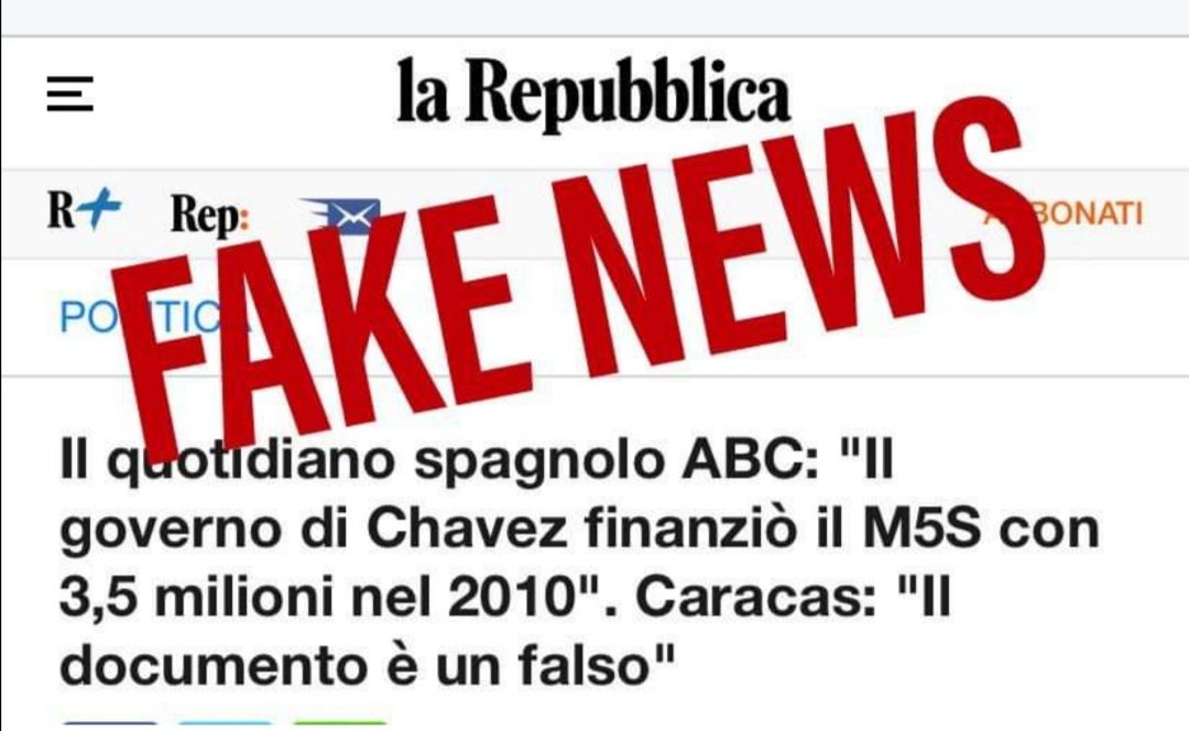 La falsità del documento che il foglio spagnolo di estrema destra (conservatore e monarchico) Abc ha esibito per "provare" un presunto finanziamento del governo bolivariano del Venezuela all'M5S nella persona del defunto Gianroberto Casaleggio appare evidente dalla seguente citazione contenuta nel documento stesso: "La destinazione del denaro nella sua totalità era per un cittadino italiano di nome Gianroberto Casaleggio, promotore di un movimento di sinistra rivoluzionario e anticapitalista nella Repubblica italiana".