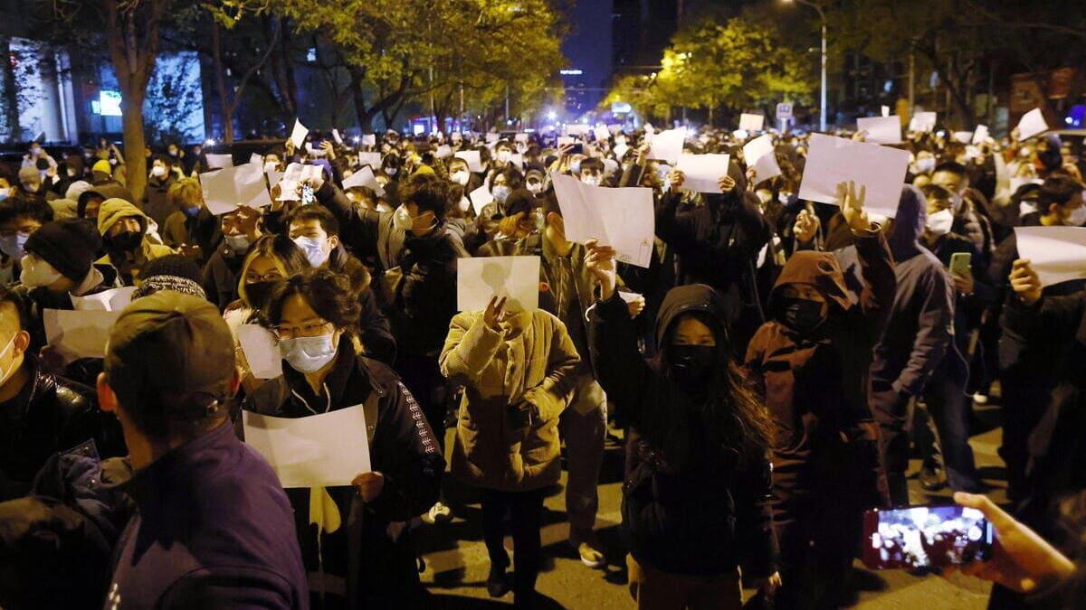 Nella foto le manifestazioni di protesta in Cina contro la politica "zero Covid" caldeggiate e fomentate dai media occidentali come "battaglia di libertà"