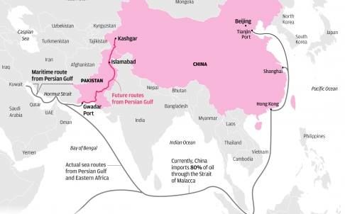Tra i punti di appoggio che lo compongono c’è il porto di Gwadar in Pakistan, in gran parte costruito e finanziato dal Paese di Mezzo. Ora questo snodo situato nei pressi dello Stretto di Hormuz potrebbe diventare il terminale di una rete autostradale e ferroviaria lunga 2.000 km - invece dei quasi 13.000 marittimi! - in grado di collegare Gwadar con la Xinjiang. Un corridoio economico che garantirebbe le importazioni da Africa e Medio Oriente e alimenterebbe le esportazioni di regioni cinesi come il Gansu e il Qinghai. Secondo le stime - l’accordo è stato siglato il luglio scorso - potrebbero servire fino a 10 anni di lavori per un totale di 15 miliardi di dollari.
