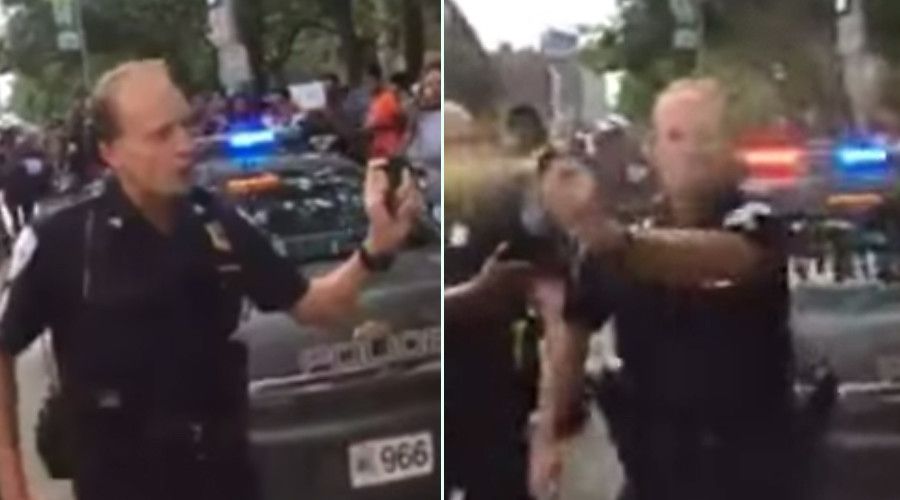 Un ufficiale di polizia ha usato uno spray al peperoncino verso alcuni attivisti del movimento Black Lives Matters che, durante un evento contro la brutalità della polizia, protestavano per l'arresto di un 14enne.