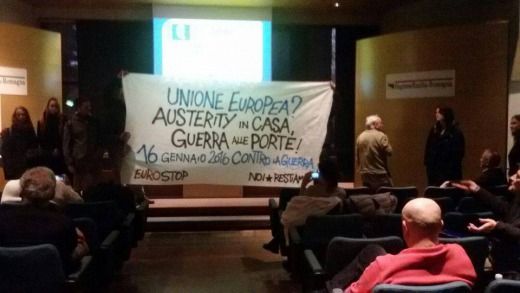Conferenza europeista a Bologna interrotta da attivisti di Eurostop