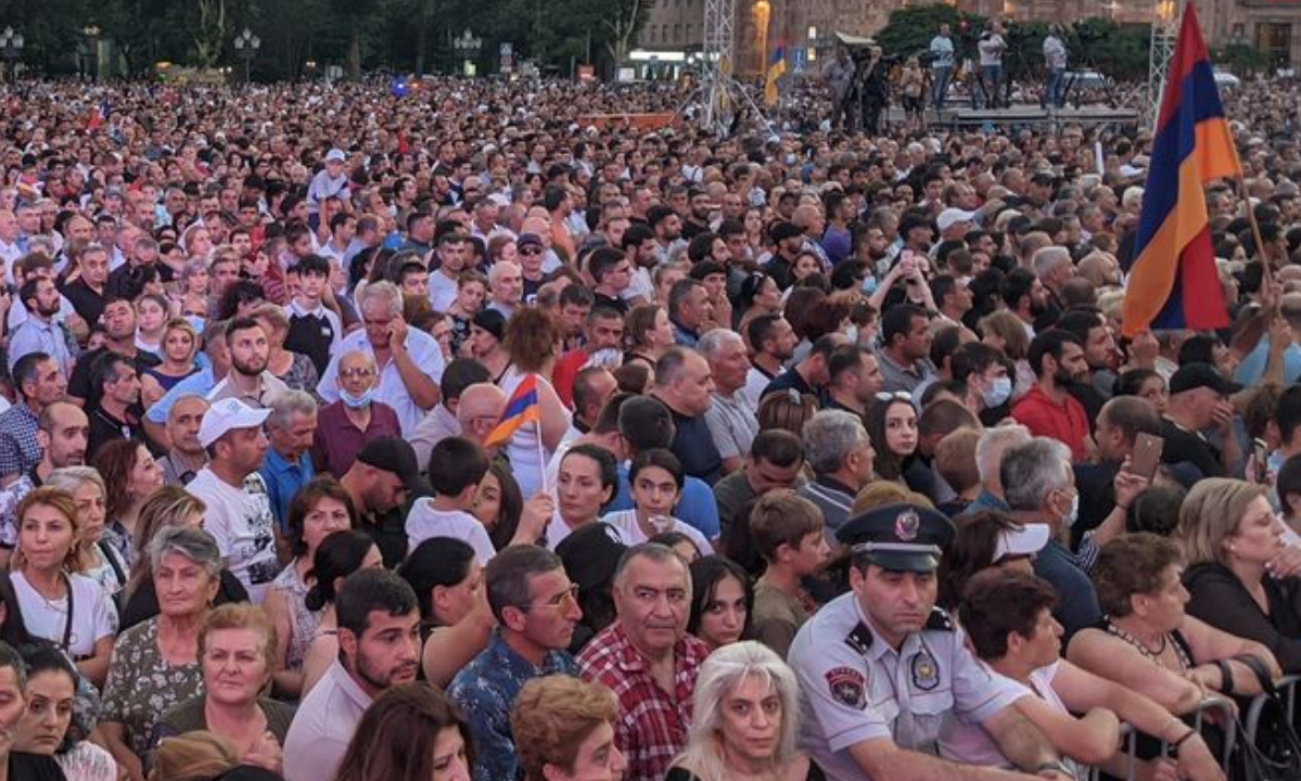 Il comizio postelettorale di Nikol Pashinyan in Piazza della Repubblica a Erevan, Armenia (21 giugno 2021). Crediti: foto di Maurizio Vezzosi