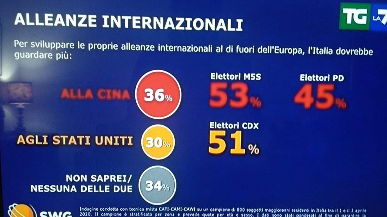 Questo sondaggio mostrato dal TG di la7 di SWG è la rappresentazione plastica di come l’opinione pubblica italiana abbia avvertito chiaramente chi ha deciso di stare vicino all’Italia mentre altri hanno volutamente ignorato il grido di dolore che partiva da Roma.