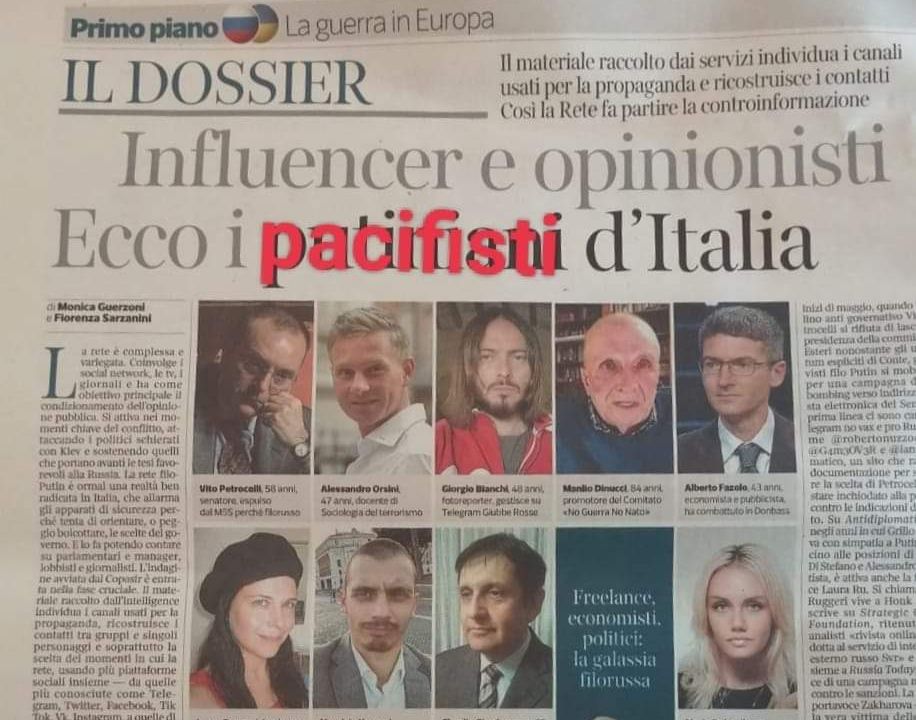 Ecco dunque come suona il titolo del dossier del Corriere, uscito domenica in edicola, alla luce di questa consapevolezza linguistica: "Influencer e opinionisti. Ecco i pacifisti d'Italia".