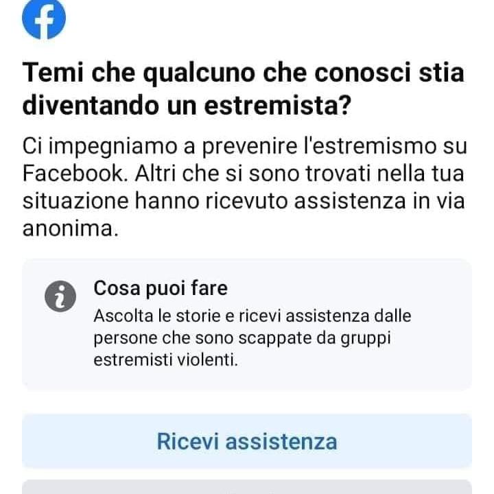 Ormai stiamo per varcare la frontiera del totalitarismo social 2.0. Facebook infatti ha iniziato a chiedere ai propri utenti: “Temi che qualcuno che conosci stia diventando un estremista?”. Il social poi continua spiegando: “Ci impegniamo a prevenire l’estremismo su Facebook. Altri che si sono trovati nella tua situazione hanno ricevuto assistenza in via anonima”.