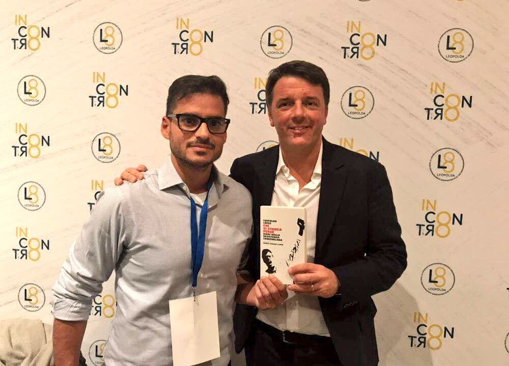 Nel tweet sopra Renzi mentre fa sfoggio del libro di Leopoldo Lopez. Per chi leggesse Repubblica o il Fatto Quotidiano ecco chi è Leopoldo Lopez.