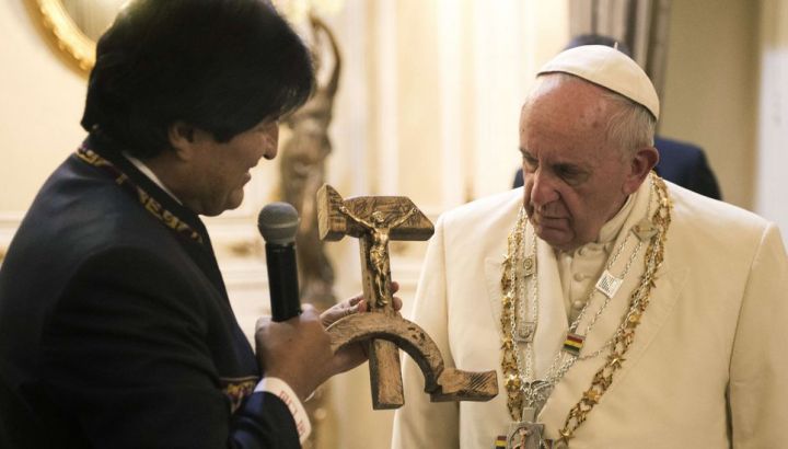Evo Morales regala a Papa Francesco un crocifisso con falce e martello
