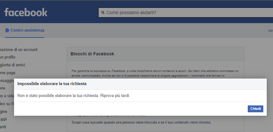Al momento la nostra Pagina Facebook di oltre 140 mila utenti è quindi bloccata per motivazioni surreali a cui non è possibile neanche fare appello. Alla nostra richiesta questo è stato il democratico secondo giudizio della multinazionale Usa...