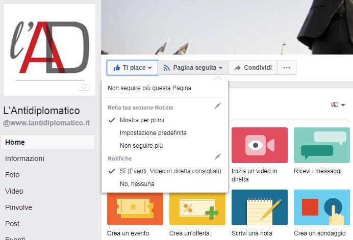 Dalla pagina Facebook de l'AntiDiplomatico dovete aprire il menù a tendina nell’opzione ‘Pagina seguita’ e cliccare su ‘mostra per primi’.