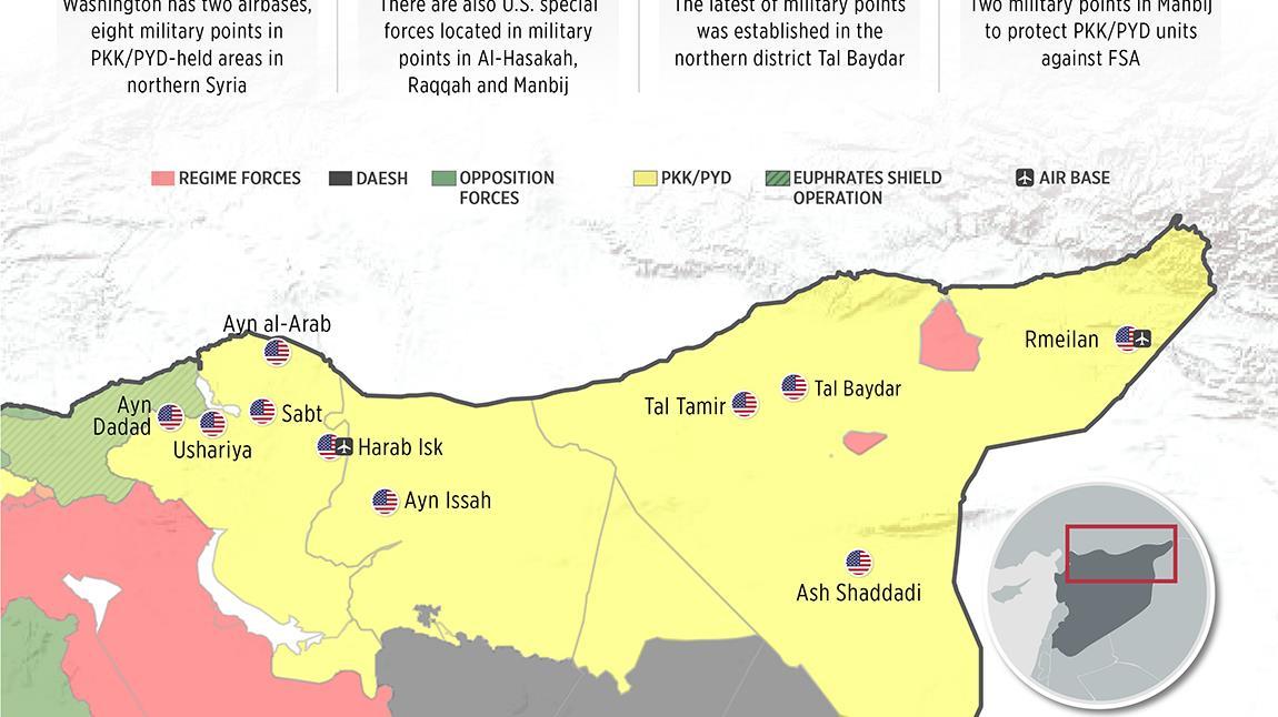 La base militare degli Stati Uniti si troverebbe nella città di Al-Shadadi. All'interno sono state costruite piattaforme di atterraggio per elicotteri, oltre a un campo di addestramento e una sala operativa progettata per pianificare e coordinare le future offensive delle cosiddette 'forze democratiche siriane', FDS, come mostra l'immagine.