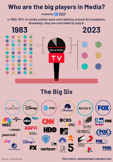 Sette tra i più sfondati miliardari del mondo, tutti del mondo High Tech e dei Fondi di Investimento, da Zuckerberg a Bezos e Murdoch, da Fink a Page e Musk, erano già padroni dell’informazione, detta social per prenderci per il culo, ma dettata dal loro logaritmo. Ora, catturati giornali come il Washington Post, o il Los Angeles Times, si lanciano all’assalto di colossi multimediali come Warner, Paramount, CNN, Discovery, Disney (di Blackrock). Sono tutti, oggi, follower di Trump, e sono tutti amici di Israele, con in prima linea le famiglie Ellison e Adelson, senza i dobloni dei quali Trump la presidenza se la poteva sognare. Il grafico che illustra il passaggio, in 40 anni, da un grande pluralismo di informazione agli oligopoli di oggi, esplicita anche il passaggio dalla democrazia all’oligarchia.