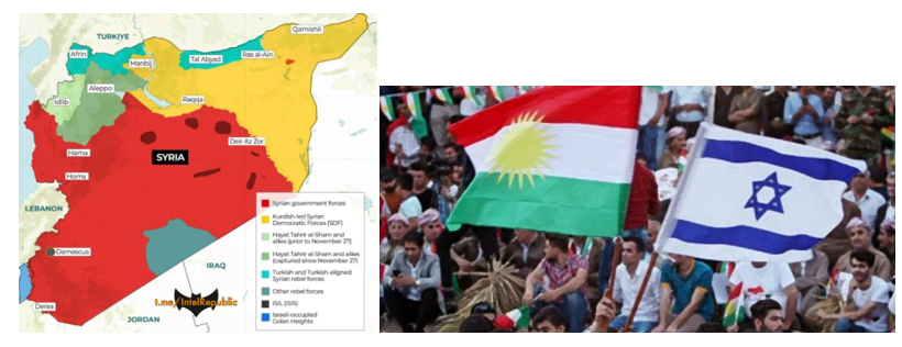 Ad eccezione della Turchia, dove la convivenza è stata segnata da repressione governativa e risposta armata, negli altri paesi, Iraq, Siria e Iran, i curdi vivevano rispettati, padroni della propria lingua e cultura, su territori abitati da sempre. Sarebbero stati l’invidia dei nostri sudtirolesi dell’Alto Adige. In nessuno di questi paesi le minoranze subivano quelle discriminazioni che la propaganda imperialista denuncia. In ognuno di questi paesi, dirigenze corrotte si sono messe al servizio di interessi stranieri, precipuamente israeliani e statunitensi, miranti alla disgregazione dell’unità dei paesi da sottomettere e saccheggiare. Il compenso? Appropriarsi di territori di altre componenti etniche. In Iraq l’area petrolifera di Kirkuk, archeologica di Ninive, industriale di Mosul. In Siria il Rojava fino a Raqqa e Deir Ez Zor, praticamente tutto il nordest agricolo e petrolifero. Il patriarca del clan curdo iracheno, Mustafa Barzani, è stato uno stipendiato CIA da quando si è prestato a fare da quinta colonna nell’Iraq antisionista e antimperialista. Il figlio, Massud. ne perpetua la missione.