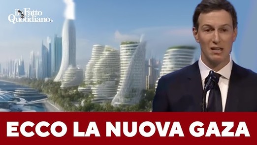 Le cose, senza i diritti che non siano quelli dei promotori del titoletto qui sopra - cinismo, volgarità, profitto – scorrono lisce. Eccolo, il demiurgo della riduzione ad dollarum di grattacieli e oasi di lusso dalle fondamenta innestate sul più grande deposito di ossa di assassinati mai composto nella Storia (se ne calcolano 10.000 sotto le macerie, da aggiungere ai 72.000 uccisi a bombe a pallottole e ai 150.00 da morte indiretta). Fattezze lisce come un uovo e vuote come una tela prima del pennello sono quelle del manichino a cui il suocero ha insufflato l’anima, pardon, de li mortacci sui. Cioè dello speculatore immobiliare senza scrupoli, assatanato di devastazioni eco-ambientali e sociali, donde trarre sangue e macerie convertibili in cemento e soldi.