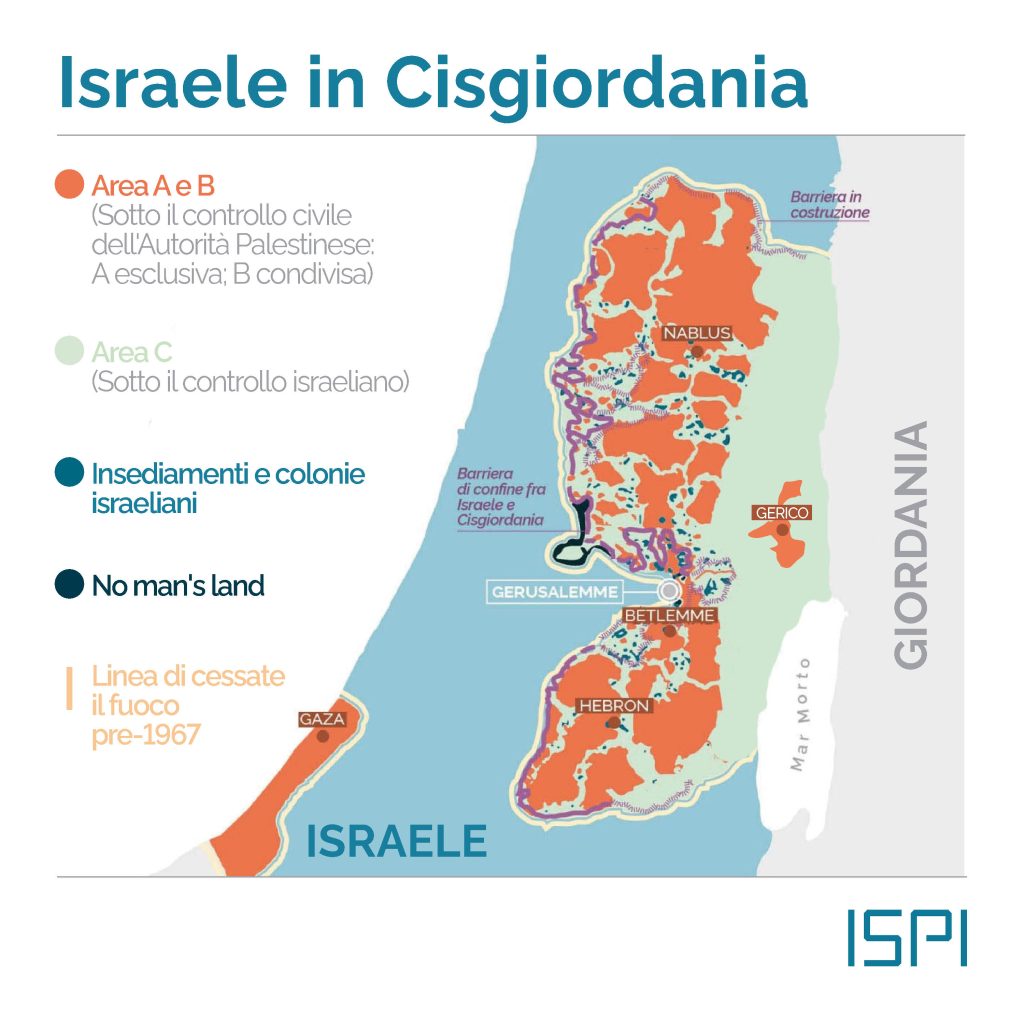 Si consolida la grande mistificazione del cammino verso la graduale costituzione dello Stato di Palestina, come deliberata ripetutamente dall’ONU, con il diritto al ritorno dei profughi della Nakba e del 1967 e col divieto di costruzione di colonie che iniziano a frantumare la continuità del previsto Stato. Lo strumento sono Oslo e quell’architettura del territorio diviso in zone da una conduzione tricefala: l’A, sotto controllo dell’Autorità palestinese, la B sotto una surreale amministrazione congiunta palestino-israeliana, la C, area delle colonie, sotto esclusivo controllo israeliano.