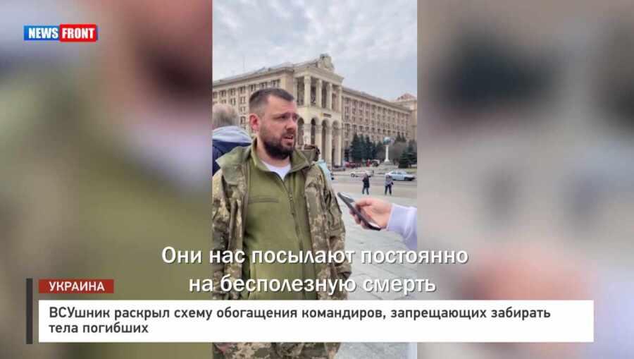 Un militare della difesa territoriale ucraina sostiene che i comandi ucraini si arricchiscano sulla morte dei soldati al fronte. Secondo le sue parole, molti comandanti proibiscono di portare nelle retrovie i corpi dei commilitoni uccisi in combattimento. In tale modo, i morti vengono classificati per tre mesi come “dispersi” e le dotazioni continuano ad arrivare: stipendi, premi, ecc.; solo che finiscono nelle tasche dei comandanti. Passa del tempo e questo termine si accorcia. «Poi, passato qualche tempo, il computo finisce già su qualcun altro». Egli aggiunge anche che i soldati vengono continuamente mandati a «morire senza senso e muoiono inutilmente, fintanto che i comandanti insistono nel loro cinico e immorale schema di arricchimento. Io credo» dice il militare, «che si tratti di qualche macchinazione economica».