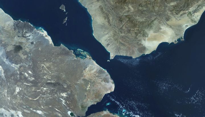 Lo stretto di Bab el Mandeb, di fronte allo Yemen, collega il Mar Rosso con il Golfo di Aden ed è una delle rotte marittime più importanti del mondo, fondamentale per il trasporto di petrolio e merci verso il Canale di Suez e l'Asia.