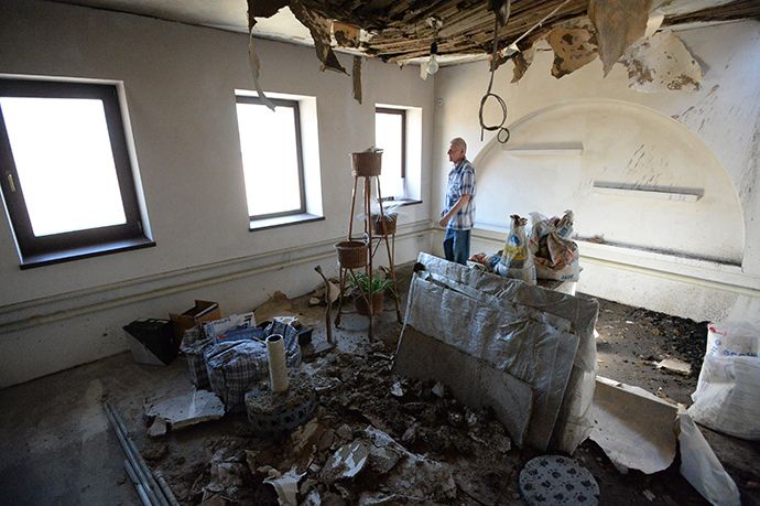 Le crepe sui muri causate dai missili aprono una vista panoramica di totale distruzione. Non c'è un angolo che è rimasto intatto. Gli abitanti del villaggio si nascondono nelle cantine, preparare il loro cibo su fuochi all'aperto perché non hanno scelta visto le condizioni interne delle loro case. "Persino i bovini, il bestiame, vive meglio di noi adesso", dice un abitante del villaggio.