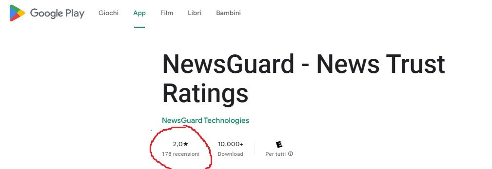 Questa ad esempio la reputazione di Newsguard su Google Play: