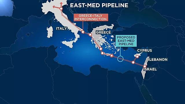 Per quanto riguarda la produzione di petrolio di Israele, è da considerarsi del tutto marginale visto che è equivalente a circa 6000 barili di petrolio al giorno (a fronte a circa 230mila barili/giorno consumati); ci sarebbero invece molto shale oil, ma dal punto di vista ambientale il costo sarebbe enorme per un paese piccolo e densamente popolato. Diverso è invece il discorso per quanto riguarda il gas: a partire dall'inizio del millennio sono stati trovati enormi giacimenti in tutto l' EastMed (quelli maggiori si chiamano Leviathan e Tamar). Risorse energetiche queste, che si trovano sia nella zona di sfruttamento economico esclusivo dello Stato di Israele che in quella di Cipro che in quella greca. Comunque i tre paesi si sono accordati per un progetto di sfruttamento congiunto che peraltro prevede la costruzione del solito tubo off-shore immancabilmente diretto verso l'Europa (attraverso l'Italia, of course). Si tratta del progettato gasdotto EastMed che dovrebbe partire dai pozzi israeliani e ciprioti per continuare attraverso una condotta prima sottomarina e poi sulla terra ferma in Grecia, per poi riconnettersi al TAP (Trans-Adriatic Pipeline) e arrivare dunque fino all'Italia e all'Europa.