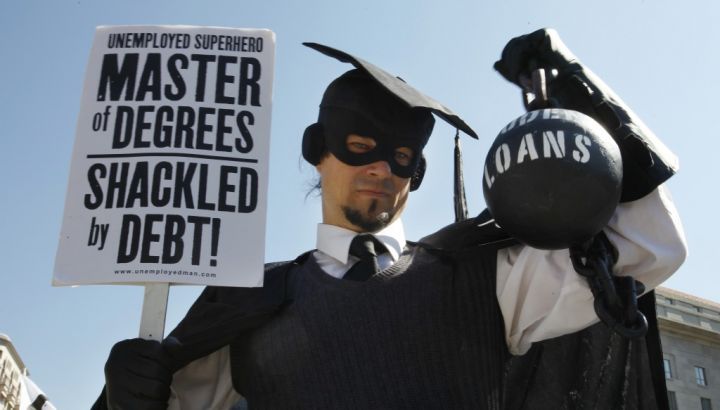 Nell'economia americana di oggi, la laurea diviene uno strumento essenziale per ottenere un lavoro, ma l'alta formazione diviene inaccessibile per una fascia di popolazione sempre maggiore. Il debito dei studenti ha superato la media di 26,000 dollari, un 40% in più in soli sette anni. Ma la media maschera alcuni eccessi incredibili: secondo la Fed di New York, quasi il 13% dei studenti ha un debito di 50 mila dollari, ed il 4% oltre i 100 mila dollari. Questi debiti superano la capacità degli studenti di poterli ripagare. Oltre il 30% non riesce a pagare le rate del debito in tempo ed, ad esempio, per i prestiti federali contratti nel 2009, tre anni dopo il tasso di default eccedeva il 13%