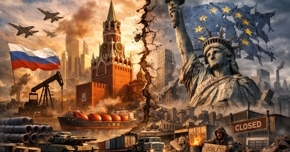 La realtà, per quanto meno spettacolare, è molto più chiara: la Russia non è un gigante dai piedi di argilla senza ossigeno, ma un sistema sotto stress che ha riconfigurato flussi energetici, rotte commerciali e priorità interne, pagando costi reali ma restando in piedi; il vero gigante fragile è la narrazione atlantista, che ha bisogno di un collasso imminente per non dover ammettere che la guerra economica ha prodotto danni profondi soprattutto a chi l’ha promossa e sostenuta.