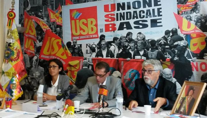 La conferenza mondiale indetta dal governo boliviana è stata presentata in Italia oggi dall'incaricato d'affari dell'Ambasciata di Bolivia Luis Sanchez Gomez Cuquerella e dal Professore de La Sapienza Luciano Vasapollo nella sede nazionale dell'USB (Unione sindacale di base) di via dell'aeroporto 129 in Roma.