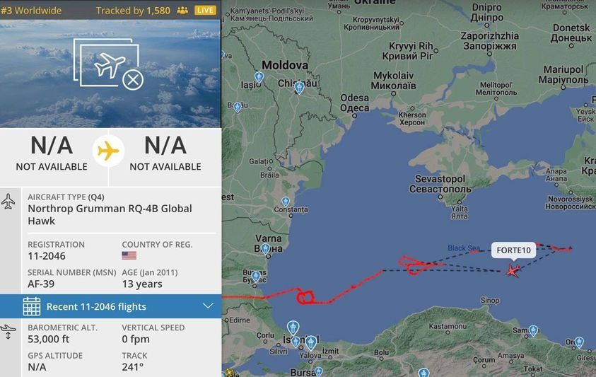 Diversi analisti internazionali, nelle stesse ore dell'attacco missilistico, hanno tracciato il volo di un drone Global Hawk di US Air Force (Forte 10 in codice) che dopo il decollo dalla base siciliana di Sigonella ha raggiunto il Mar Nero; a circa 200 Km a sud della città di Yalta (Crimea) il velivolo ha spento il transponder rendendosi invisibile agli apparati radar. Il drone è poi rientrato nella mattinata del 24 giugno a Sigonella (ore 6 locali).