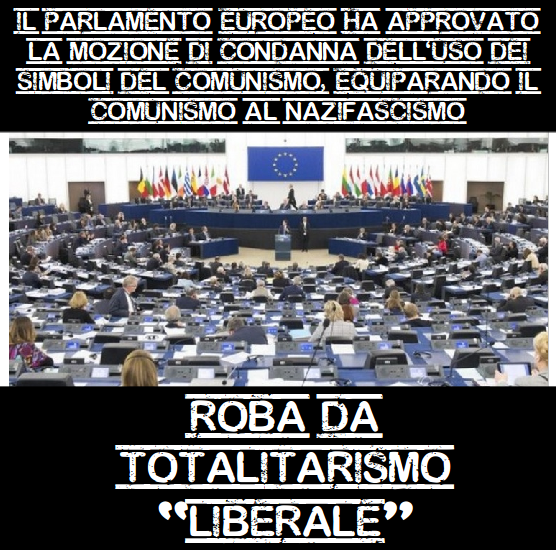 Nella giornata di ieri il Parlamento europeo con 535 voti a favore, 66 contro e 52 astenuti ha approvato la mozione di condanna dell'uso dei simboli del comunismo, chiedendo la rimozione dei monumenti che celebrano la liberazione avvenuta ad opera dell’Armata Rossa ed equiparando il comunismo al nazifascismo. Di seguito tutti i parlamentari che hanno votato questa infame mozione, tra i quali tutti i parlamentari del PD.