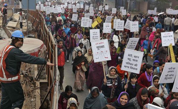 Mercoledì migliaia di donne hanno manifestato pacificamente nelle strade di Nuova Delhi per protestare contro le violenze sessuali in atto nel paese e chiedere una nuova legge più severa contro il crimine dello stupro. Tra loro era presente anche il ministro Sheila Dikshit.