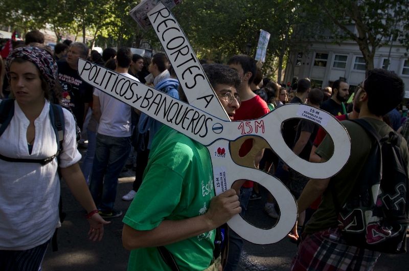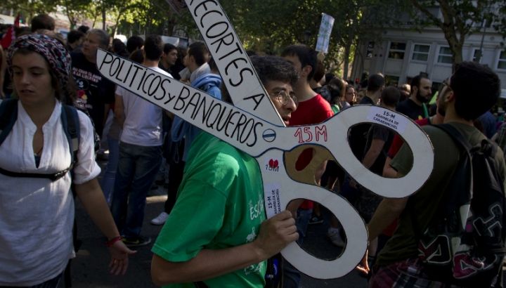 Ma la politica di tagli necessaria a rispettare questi parametri ha generato la rabbia degli indignados in una imponente manifestazione, che si è protratta fino all'una di mattina di mercoledì: 64 persone, tra cui 27 agenti, sono rimaste ferite, 35 manifestanti arrestati. Obiettivo della manifestazione, convocata nelle reti sociali dal coordinamento 25-S, era cingere in maniera simbolica Il Parlamento e “salvare” la sede della sovranità popolare dal “sequestro compiuto dalla Troika e dai mercati finanziari, realizzato in collaborazione con la maggioranza dei partiti politici”.