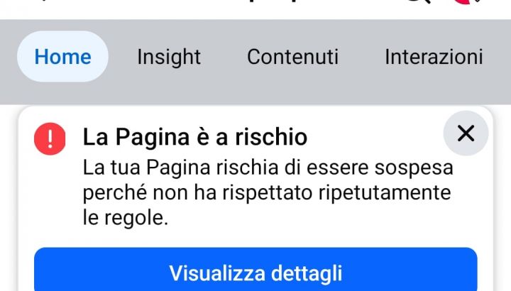 La nostra pagina Facebook rischia la chiusura.