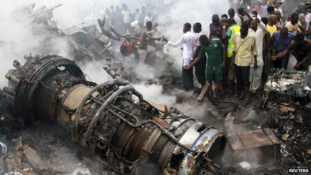 Testimoni raccontano di aver visto l'aereo volare a bassa quota e poi urtare un edificio di due piani e prendere fuoco. Subito si e' alzata una densa nube di fumo nero. "Il velivolo ha volato a quota bassa per almeno 5 minuti con un sottofondo infernale prima di schiantarsi su un quartiere molto popoloso. Poi ha preso fuoco", ha raccontato alla France Presse un testimone. Centinaia di curiosi sono accorsi nella zona della sciagura e molti di loro hanno iniziato a scattare foto. Tra le macerie del velivolo erano visibili diversi corpi carbonizzati. "Posso confermare che uno dei nostri aerei e' precipitato alla periferia di Lagos", ha detto un portavoce di Dana Air, Tony Usidamen. "Abbiamo perso i contatti con l'aereo", ha aggiunto. Alcune fonti sostengono che il velivolo abbia toccato cavi di alimentazione durante la discesa verso la pista. Quello di oggi e' uno degli incidenti piu' gravi nella storia dell'aeronautica nigeriana, che sono tutt'altro che rari. Negli ultimi 17 anni, le vittime per sciagure aeree nel Paese sono state almeno 1.500. Da tempo le autorita' si battono per sostenere una rigida politica di sicurezza aerea.