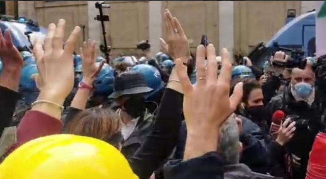 Migliaia e migliaia di lavoratrici e lavoratori Alitalia, Ilva, ecc. oggi in una Roma militarizzata come non mai, manganellati.
