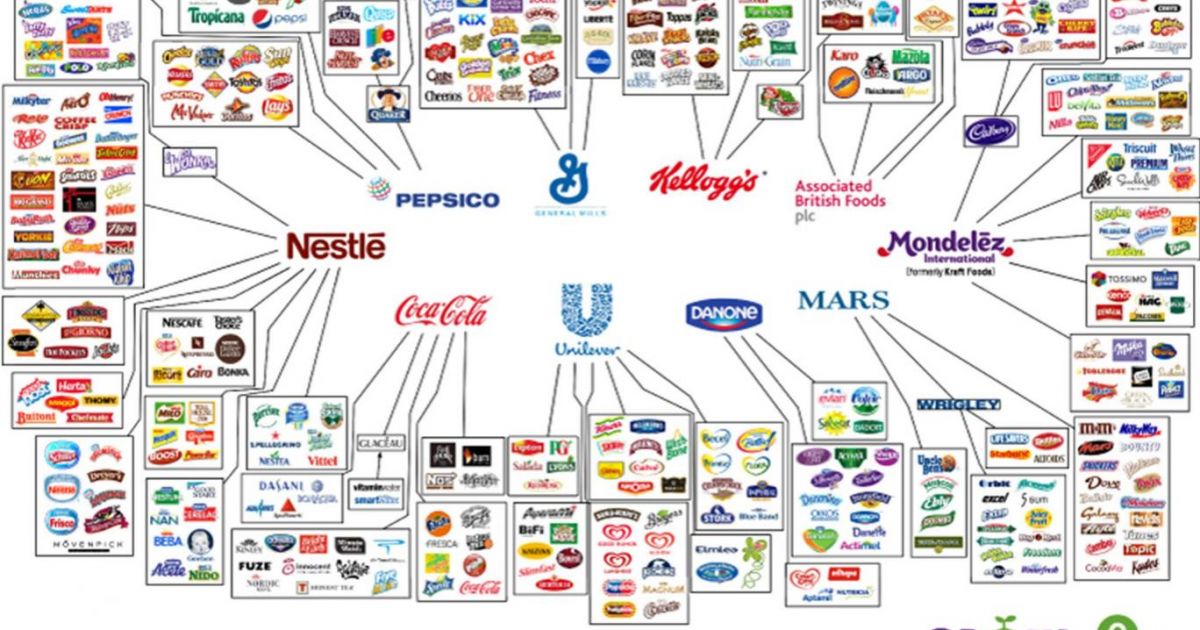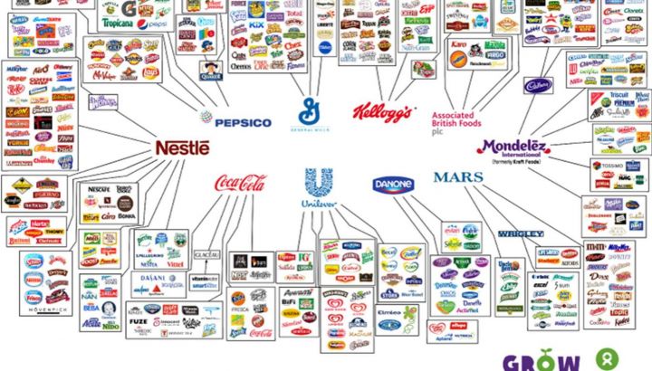 La maggior parte delle grandi marche di cibo, prodotti per la casa e per gli animali e cosmetici sono controllate da solo 10 grandi aziende. Oxfam, una confederazione internazionale di organizzazioni non governative, ha creato un infografica che mostra la predominanza di queste aziende nel mercato mondiale e valuta ogni secondo il loro rispetto per l'ambiente e dei diritti dei lavoratori, ha riferito The Independent.
