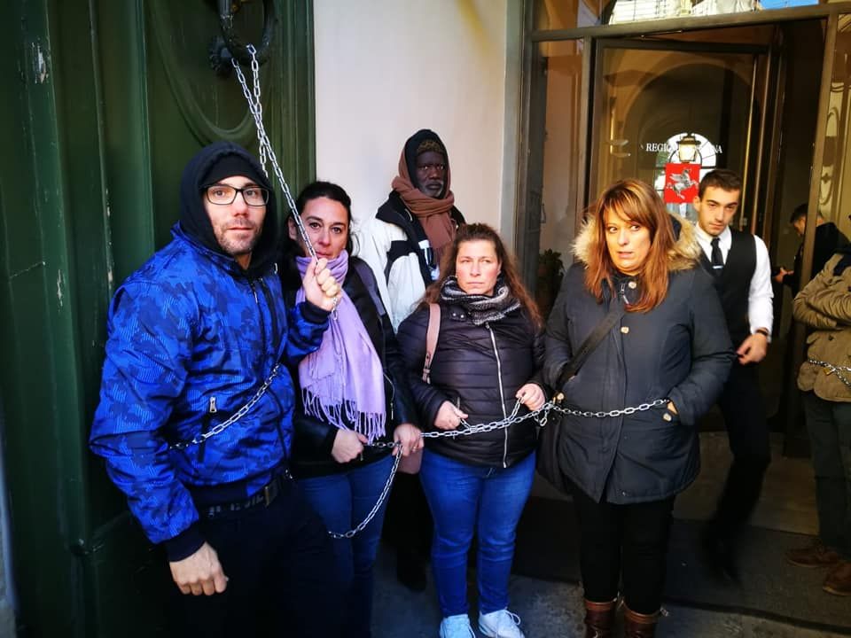 Le lavoratrici licenziate alla Piaggio di Pontedera si sono incatenate all’entrata della sede della Regione Toscana per avere giustizia.