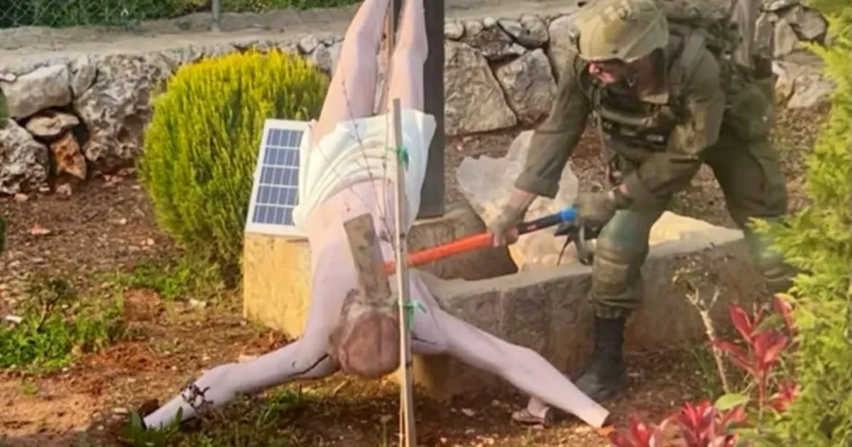 Domenica, un'immagine che mostrava un soldato israeliano intento a distruggere con un martello pneumatico una statua di Gesù crocifisso nel sud del Libano è diventata virale sui social media.