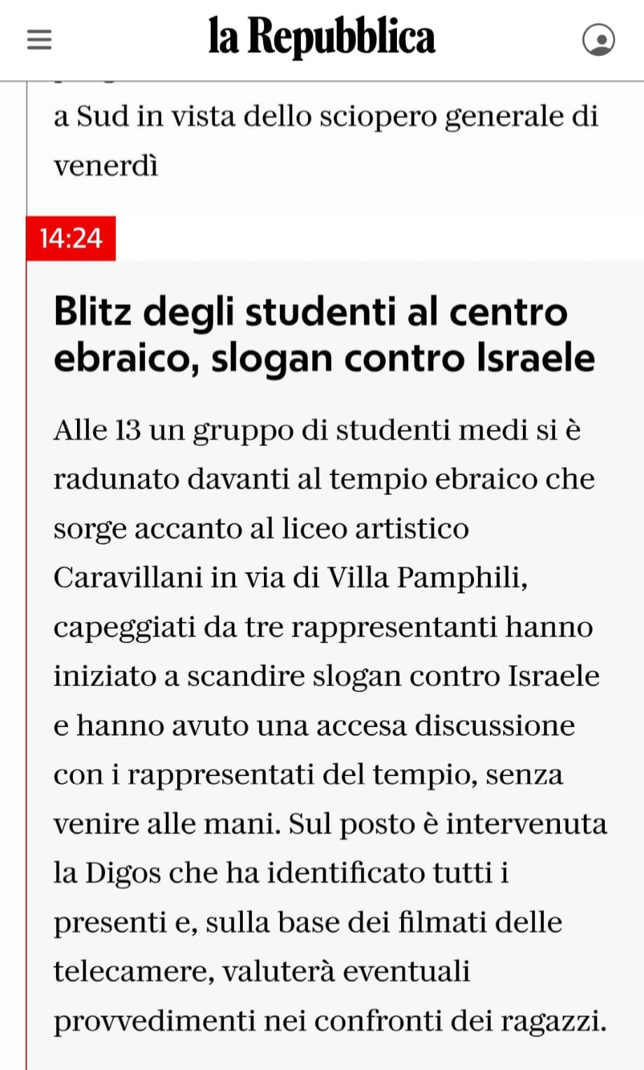 Pare che un ragazzino ebreo con la kefiah sia stato insultato dal padre, ma questo si apprende solo dalle prime ricostruzioni di alcuni studenti sui social.